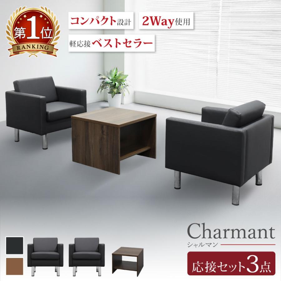 法人送料無料 応接セット 3点セット 2人用 ロビーセット 1人掛けソファー サイドテーブル パネル脚 アームチェア コンパクト シャルマン SA681-1-2A2T14S