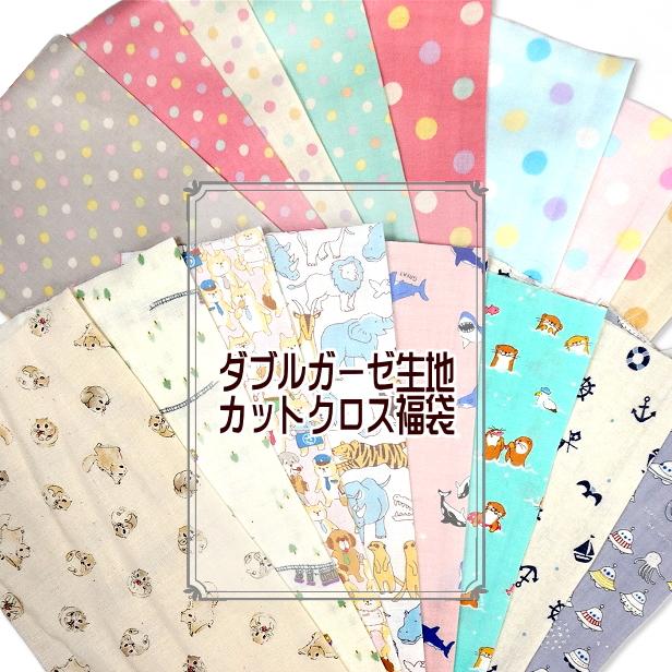 【2025年 12/25 リニューアル】ダブルガーゼ カットクロス福袋。動物や水玉ドット柄などいろいろ。小さめでハンカチ作りにピッタリのサイズ。お子様のマスクやハンカチに。