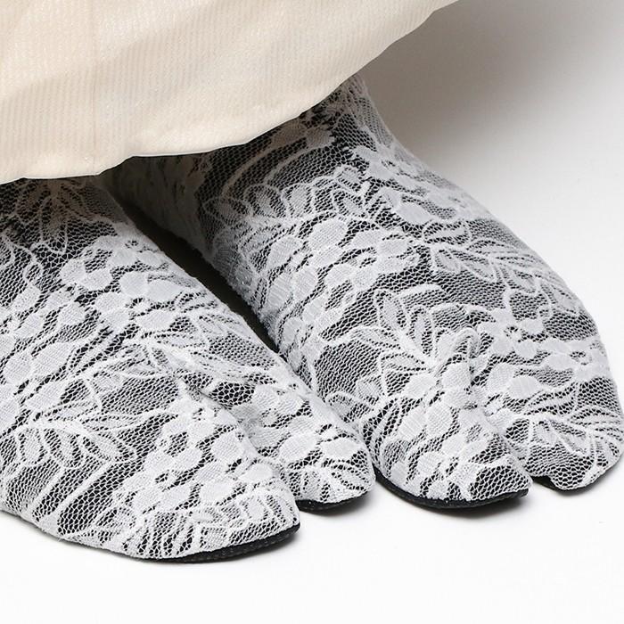 優しいカラーの色味が可愛いレース足袋です。 ストレッチ素材を使用したソックスタイプの足袋ですので、気軽に、楽に履けます。二重になっているので足が透けることなく、底には滑り止めもついていて安心。 フェミニンな着こなしにぴったりの足袋です。[NEW!]この度お客様のお声をもとに、履き口と素材を見直し商品の改善を行い、より履きやすく、ぴったりフィットするレース足袋へと生まれ変わりました!