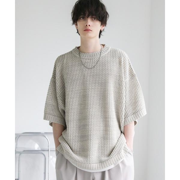 商品名:透かし編みメランジドルマンメッシュ5分袖サマーニット