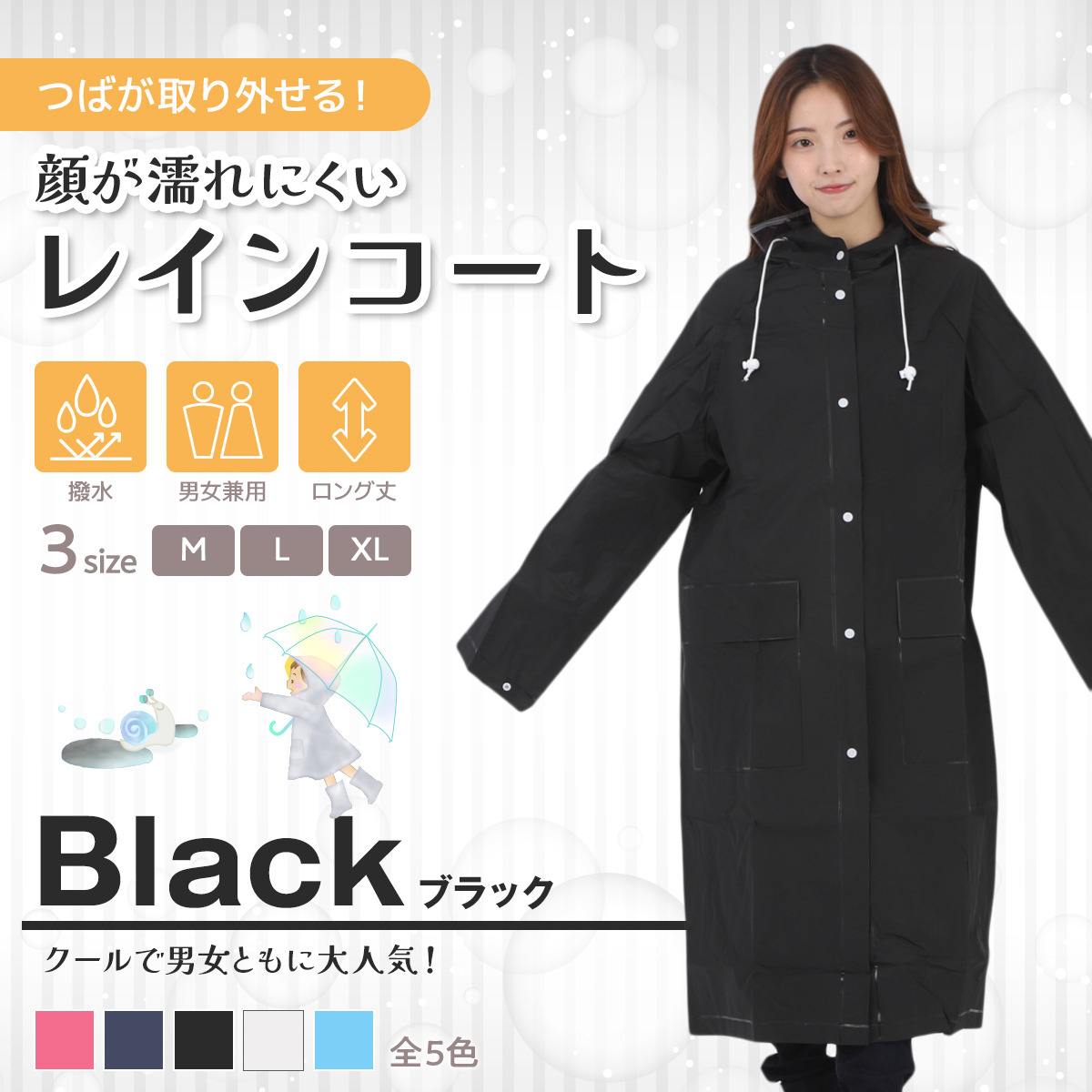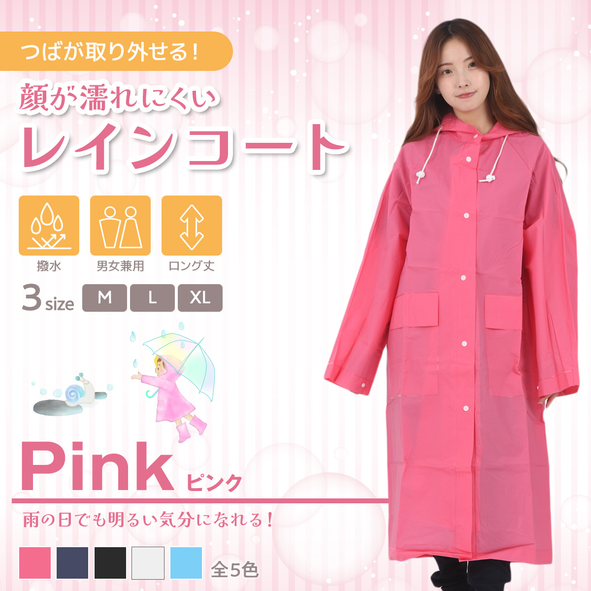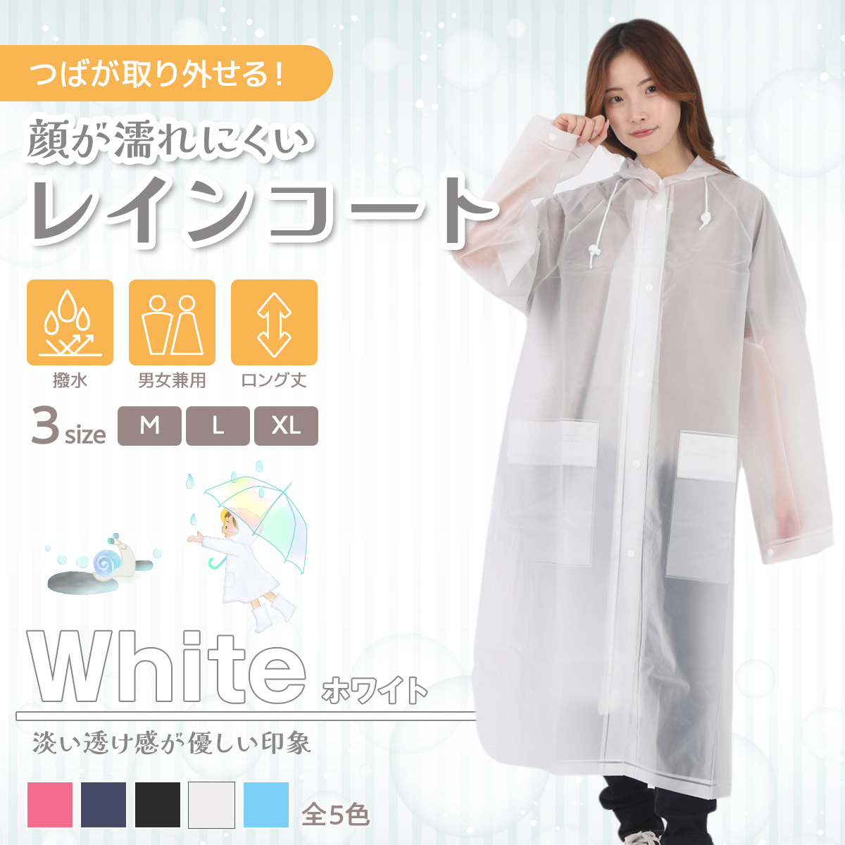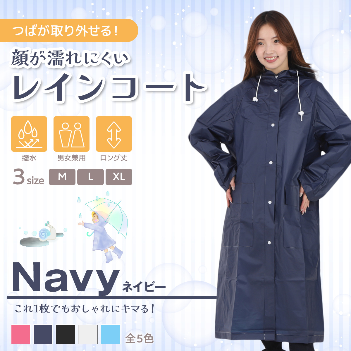 カラー:ホワイト、ブラック、ブルー、ネイビー、ピンク