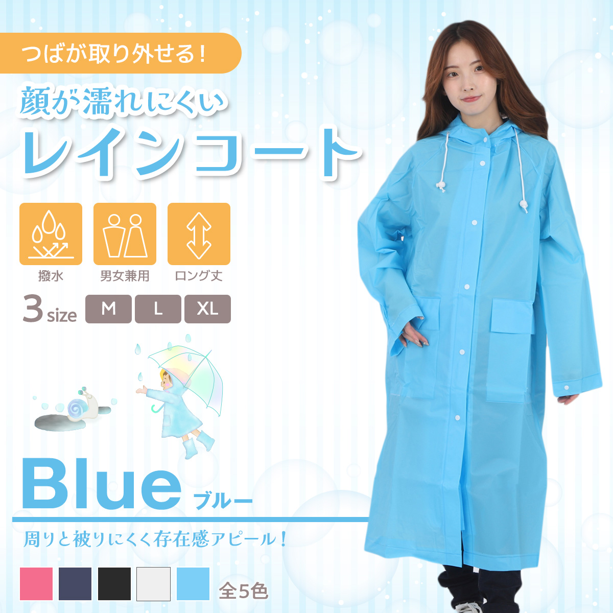 豪雨などの場合でも顔が濡れにくくなっております。