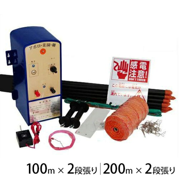 アポロ 電気柵 2段張りセット (100m・200m) アポロエリア SP-2013 [イノシシ用 猪用 防獣フェンス 電柵 電気牧柵 100m…