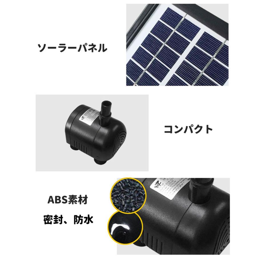 セット内容:ソーラーパネル、LED付きポンプ、ノズルアタッチメントセット、スタンド棒セット