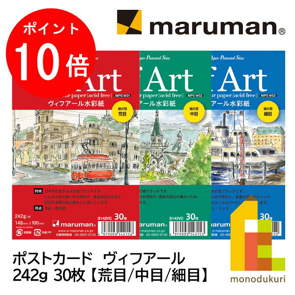 【楽天スーパーSALE限定!エントリーで全品ポイント10倍】マルマン ポストカード ヴィフアール 242g (荒目/中目/細目)…