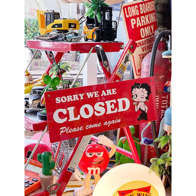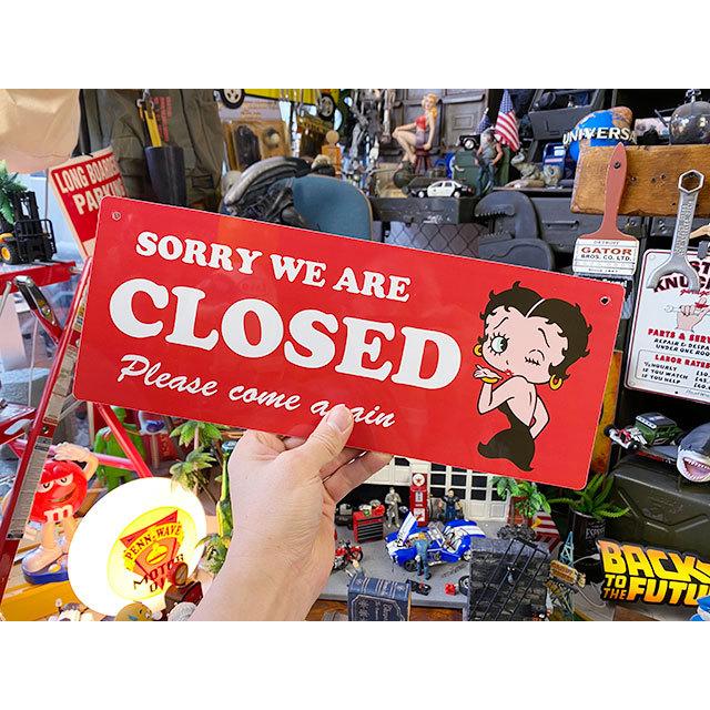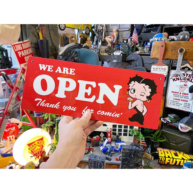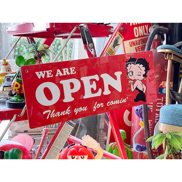 イブニングドレス姿でウインクするベティ・ブープがデザインされたオープン&クローズ看板です。