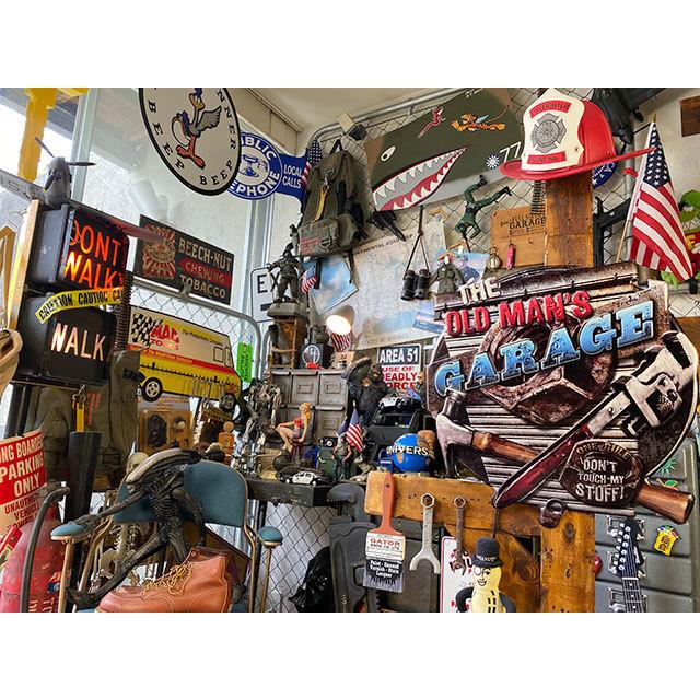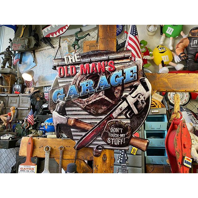 そんなおやっさんのガレージにぜひとも飾って欲しいのがこのオールドマンガレージのブリキ看板です。