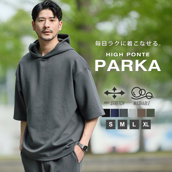 【セットアップ対応】 プルパーカー プルオーバー メンズ 春 夏 春服 夏服 パーカー ハーフスリーブ 半袖 5分袖 ポン…