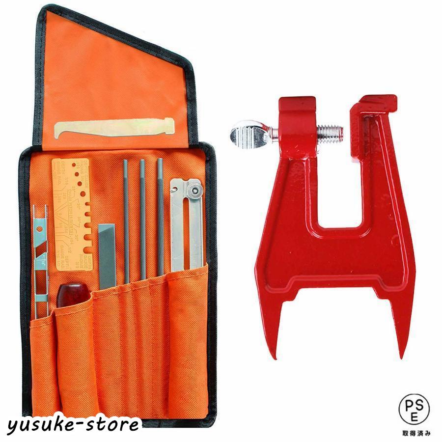 チェーンソー目立てセット 目立て用クランプ 10点セット 丸ヤスリ3種 4.0mm/4.8mm/5.5mm 木工用 DIY 削り器 手動工具 収納袋付き