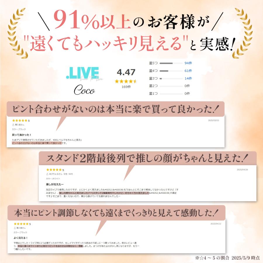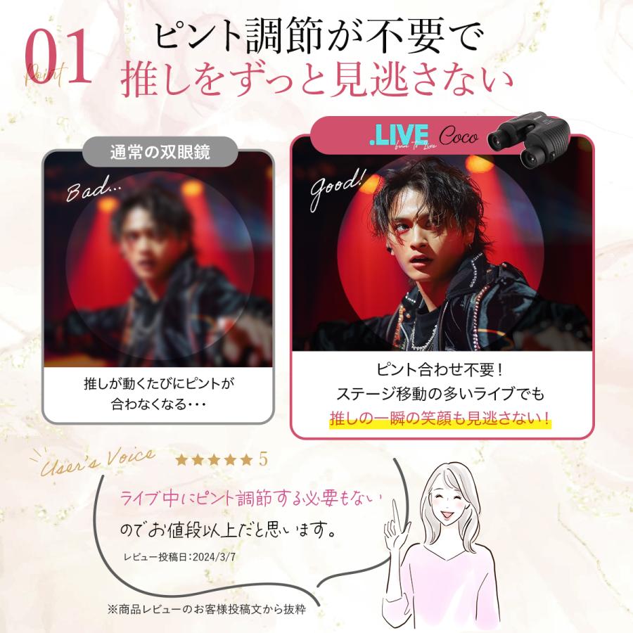 コンサート・ライブ専用設計の 双眼鏡 だから遠い席でも推しがずっと目の前に♪