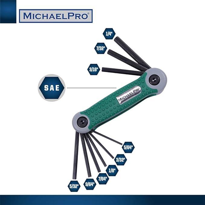 MichaelPro マイケルプロ■折りたたみ式六角レンチセット SAE メトリック 2個セット 計17サイズ SAE:5/64,3/32,7/64,1/8,9/64,5/32,3/16,7/32,1/4インチ メトリック:1.5,2,2.5,3,4,5,6,8品番:MP001007