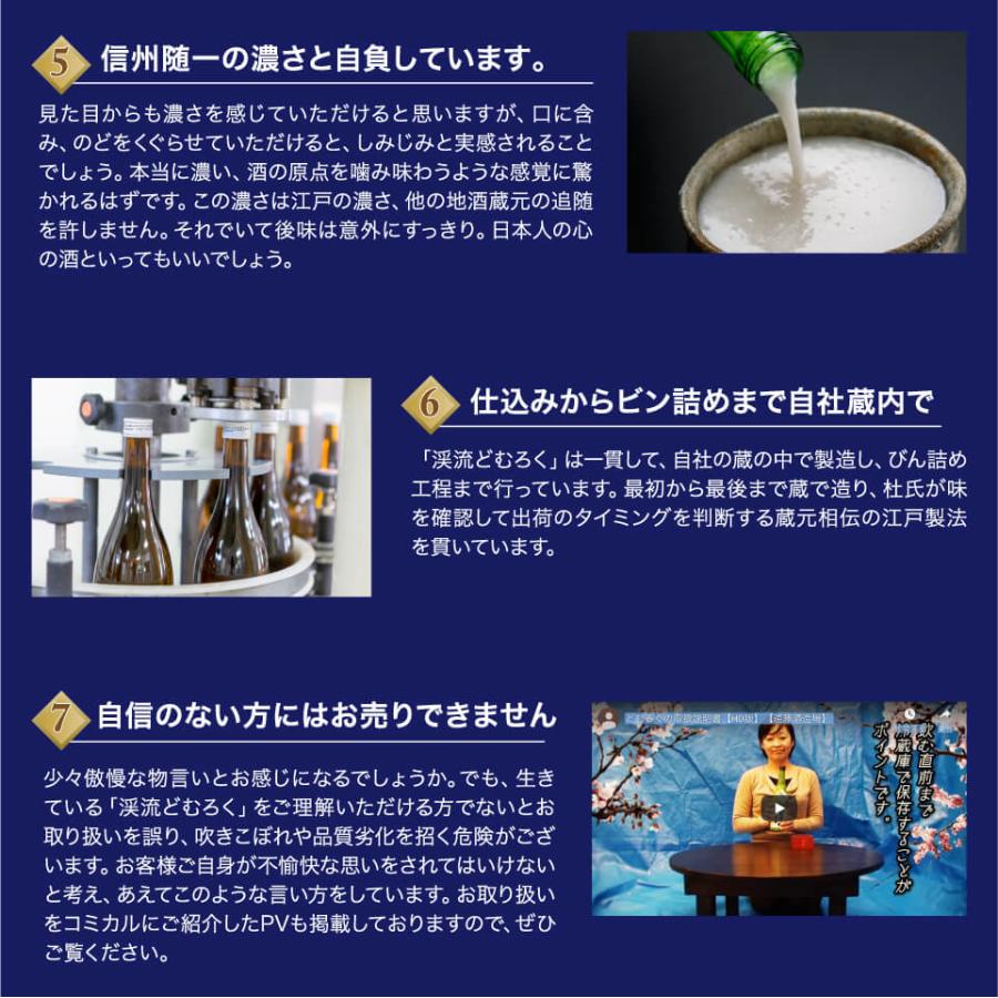 ※必ず立てた状態で冷蔵庫で保管してください。【セット内容】●渓流 どむろく720ml●渓流 うわずみ どむろく720ml●渓流 どむろく 純米720ml●3倍どむ720ml●渓流 どむろく 純米大吟醸720ml※こちらの商品は、ダンボール箱に入れて発送致します。包装紙、のし等のラッピング対応はできませんので、あらかじめご了承ください。