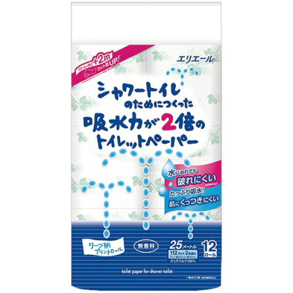 エリエール シャワートイレのためにつくった吸水力が2倍のトイレットペーパー ダブル 芯あり 25m 無香料 72ロー…