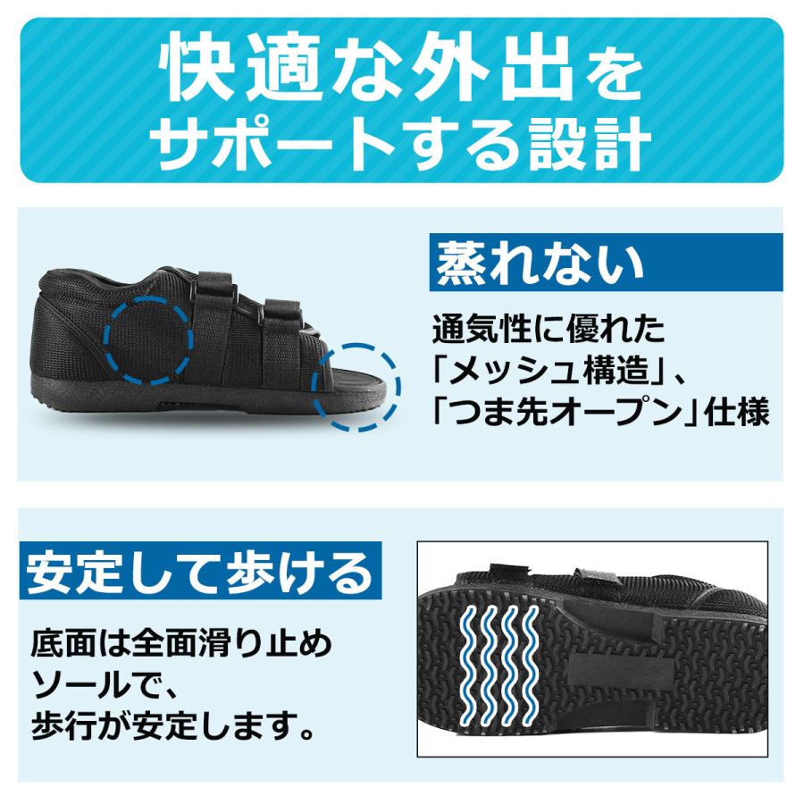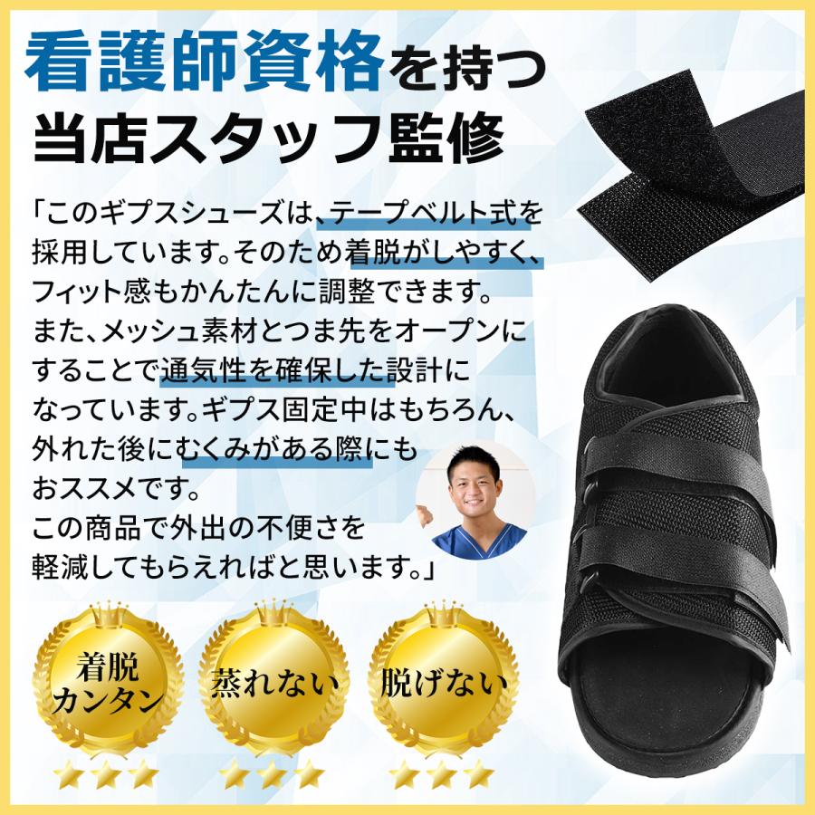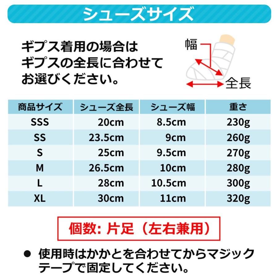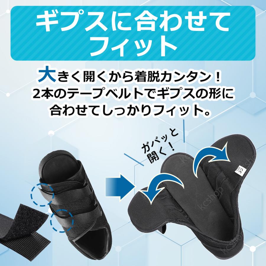 商品名:ギプスシューズ ギブス サンダル カバー ギプスの上から履ける 靴 左右兼用 片足 メンズ レディース 子供 つま先 ブラック 看護師監修