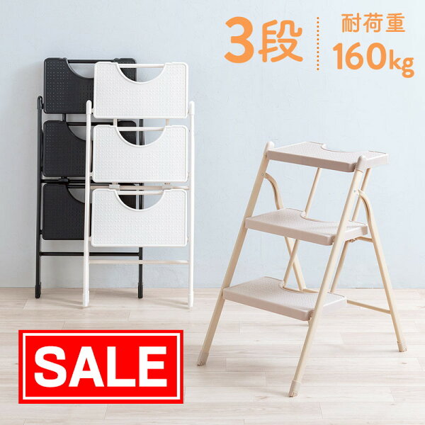脚立 踏み台 3段 折りたたみ コンパクト 足場 ステップ 家庭用 トラック 義務化 滑り止め ブラック クリームベージュ ホワイト おしゃれ