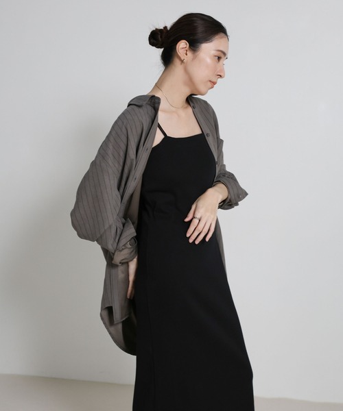 商品名:【TALLあり】ダブルストラップカップ付きリブキャミワンピース≪スタイルアップ≫