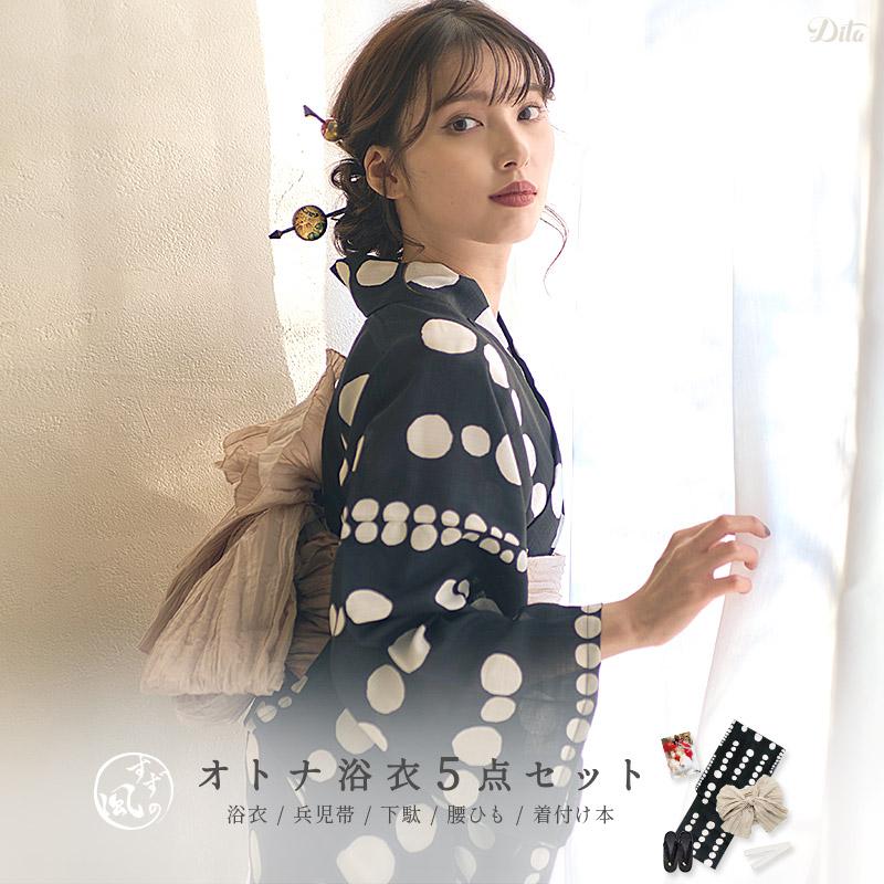 の届いてすぐに1人で着られる合計5点セット。毎年ランキング1位を獲得するDitaの浴衣は、SNSでも話題の人気商品。