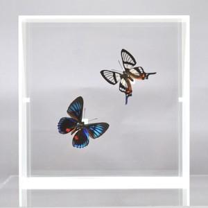蝶の標本 シジミタテハ 2頭セット ホワイトフレーム チョウ バタフライ パピヨン