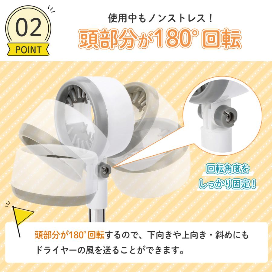 下向きや上向き、斜めにもドライヤーの風を送ることができます。