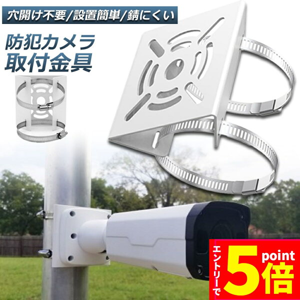 防犯カメラハウジングをポールやコンクリート柱などにネジ止めをしないで(構造体に穴をあけずに)、設置するための軽くて丈夫な取付金具(ブラケット)です。