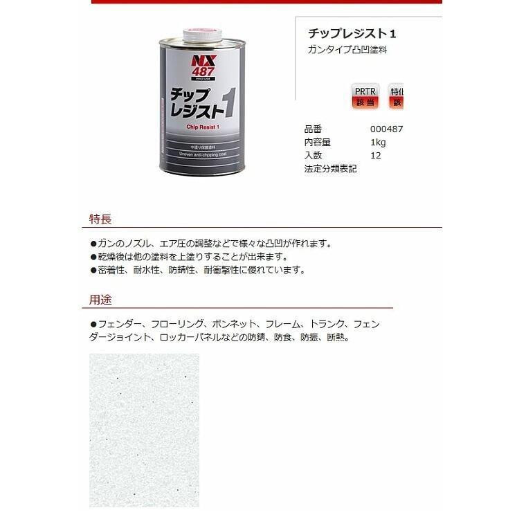 000487 チップレジスト 1kg 12缶 イチネンケミカルズガンのノズル、エア圧の調整などで様々な凸凹が作れます。? 特 長●ガンのノズル、エア圧の調整などで様々な凸凹が作れます。●乾燥後は他の塗料を上塗りすることが出来ます。●密着性、耐水性、防錆性、耐衝撃性に優れています。用 途●フェンダー、フローリング、ボンネット、フレーム、トランク、フェンダージョイント、ロッカーパネルなどの防錆、防食、防振、断熱。