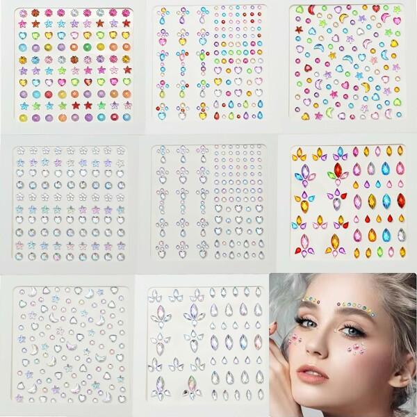 harukita ラインストーン ラインストーンステッカー 顔 フェイスシール 自己粘着性 キラキラ 3Dシ