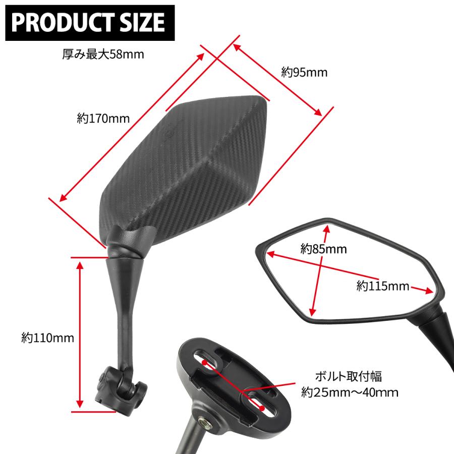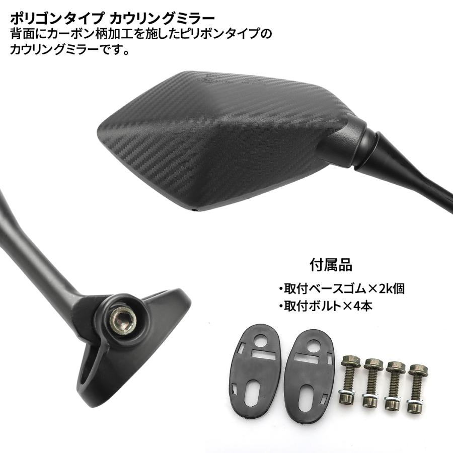 背面にカーボン柄を施したポリゴンタイプのカウリングミラーです。
