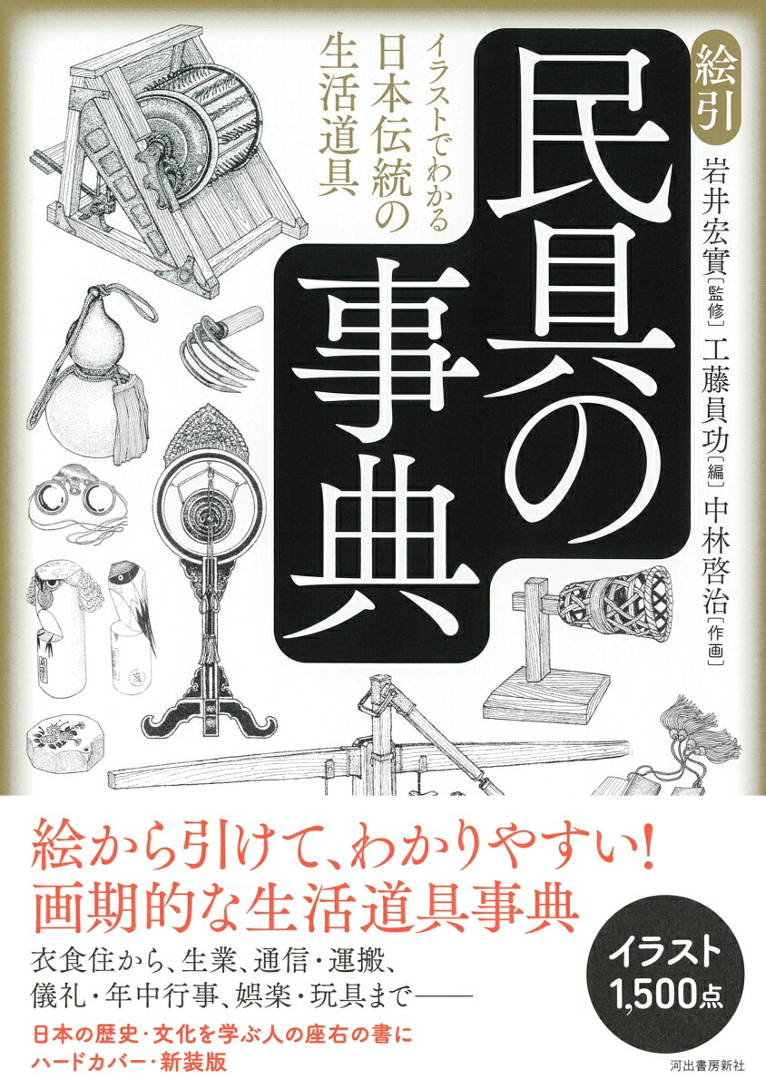 絵から引けて、わかりやすい!画期的な生活道具事典。衣食住から、生業、通信・運搬、儀礼・年中行事、娯楽・玩具までー。日本の歴史・文化を学ぶ人の座右の書に。ハードカバー・新装版。イラスト1,500点。