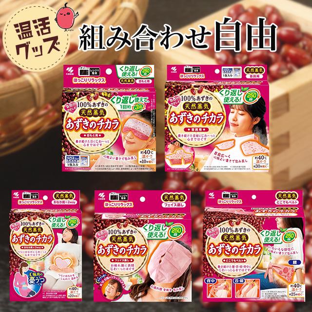 この製品シリーズは、体の様々な部位に対応し、あずきの天然蒸気の温熱効果を利用して疲れをほぐすことを目的としています。