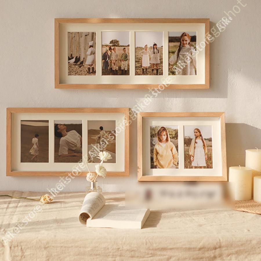木製風フレームとペーパーマットの写真立て 壁掛け インテリアフレーム4 写真立て 卓上 壁掛け L版 シンプル ナチュラル ウッド フォトフレーム 木製 チーク材