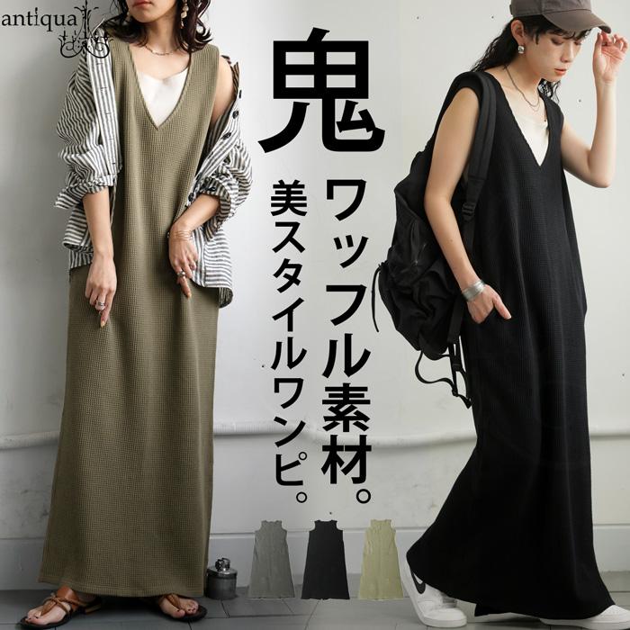 【検索ワード】ワッフルワンピース レディース ボトムス ワンピ サロペ ロング 細見え ノースリーブ オニワッフル 伸縮 ストレッチ 無地 Vネック ポケット付き 綿100 綿 コットン ベンツ ゆったり 楽ちん シンプル 高級感 柔らかい Iライン ストレート つなぎ ジャンパースカート ワンピース レイヤード 重ね着 アレンジ ロングワンピース ロングワンピ サロペットスカート サロペット ラフ 美シルエット 脚長 足長 美脚効果 華奢見え ゆる オンオフ きれいめ 上品 スリム マキシ丈 のびのび フィット 旅行 お出掛け 飛行機 リラックス カーキ ブラック 黒 チャコールグレー グレー antiqua アンティカ 大人 おしゃれ 10代 20代 30代 40代 50代 60代 春 夏 お洒落 カジュアル かわいい かっこいい あんてぃか