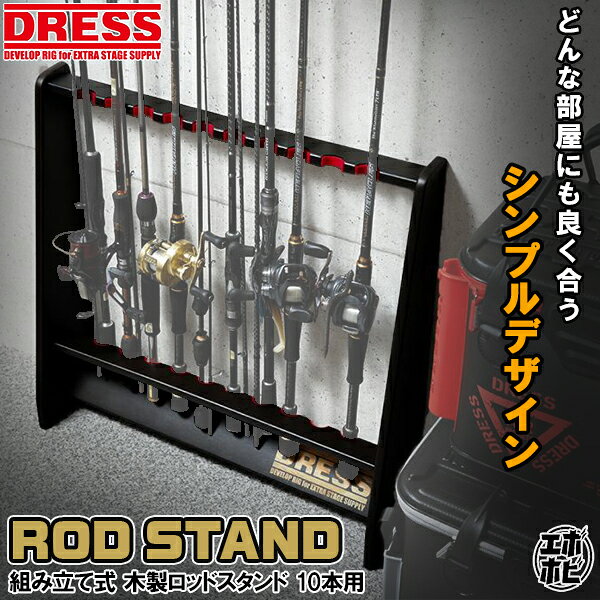 ドレス(DRESS)木製 ロッドスタンド 10本 ブラック 竿置き 竿立て 釣り 釣り具 収納 ロッド おしゃれ 部屋 インテリア