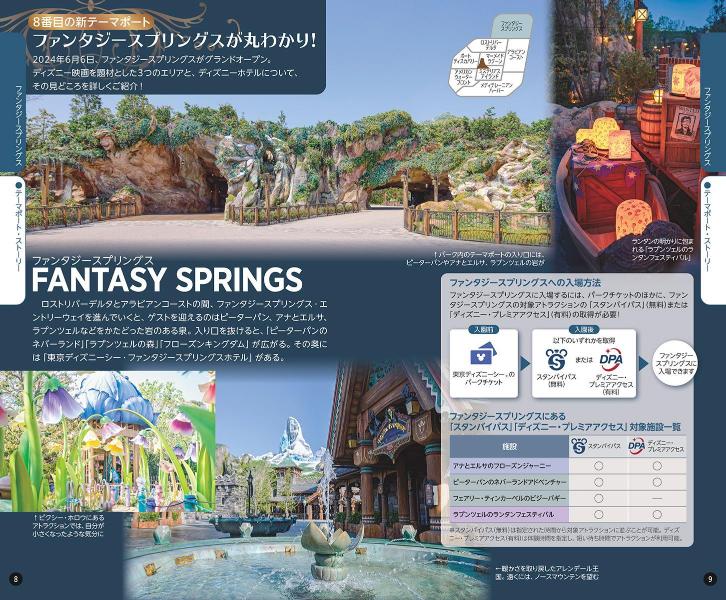 新しく誕生した東京ディズニーシー、8番目のテーマポート「ファンタジースプリングス」。今回は、ファンタジースプリングスを巻頭46ページで大特集しています。3つのエリア「フローズンキングダム」「ラプンツェルの森」「ピーターパンのネバーランド」のアトラクション、レストラン、ショップは、もちろん、一度は泊まってみたい東京ディズニーシー・ファンタジースプリングスホテルまで、徹底的に紹介しています。