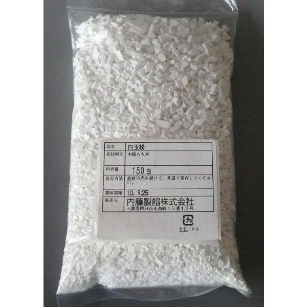 内容量:白玉粉 150g 保存方法:直射日光を避け、常温で保存してください。商品説明:もち米を精白・水洗いをしてから石うすで水引きして、沈殿したものを乾燥させたものです。白玉だんごにして、お汁粉・かき氷・ポンチなどのデザートなどに大福の生地としてお使いいただけます。大袋から小分けしています。