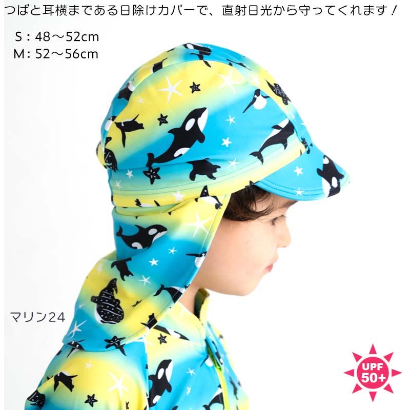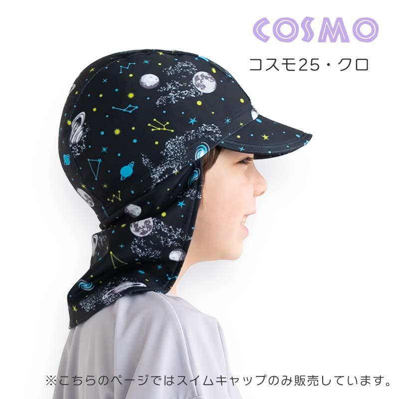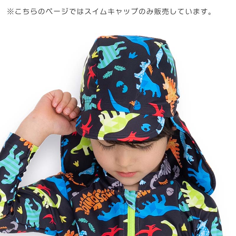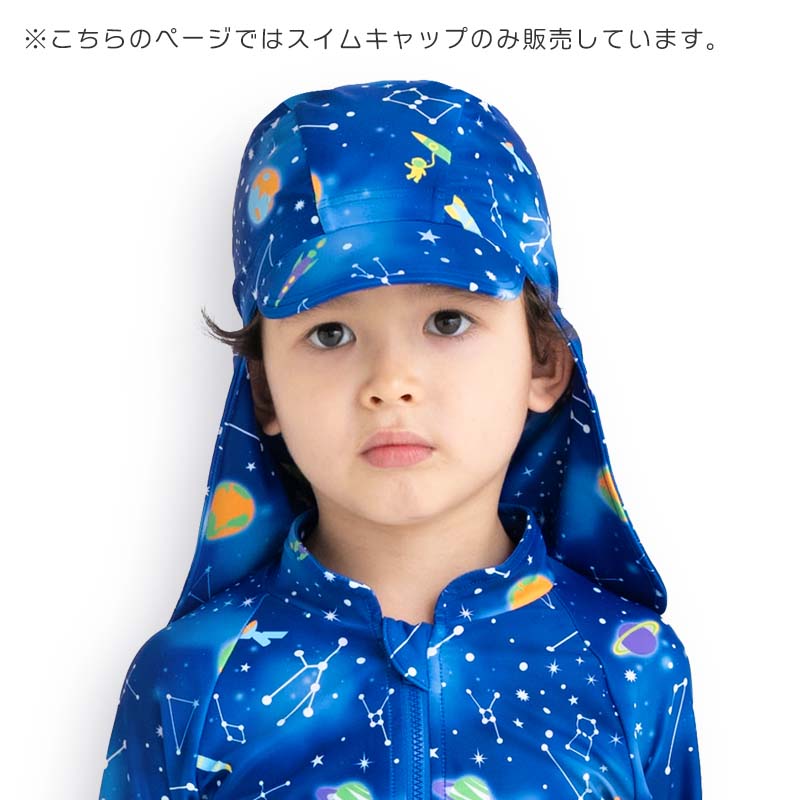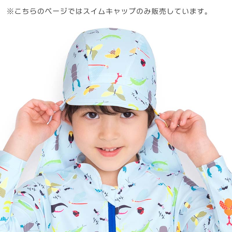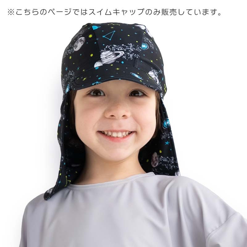 従来のスイムキャップに「つば」と「日よけたれ」をつけました。