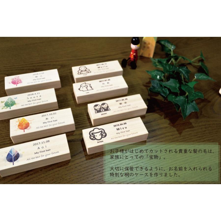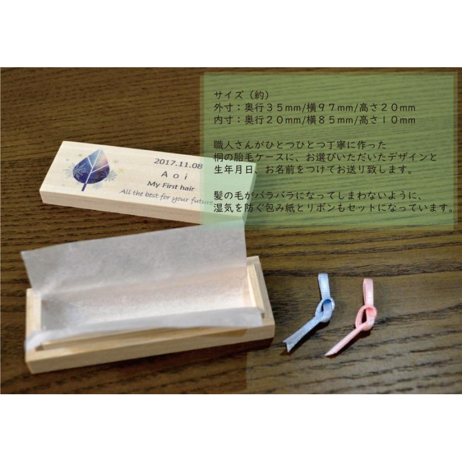 職人さんがひとつひとつ丁寧に作った桐の胎毛ケースに、デザインとお名前をつけてお送り致します。