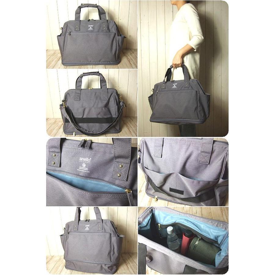 軽いスポーティーな素材感で、荷物の量によって調節可能なボトムファスナーとがま口の様にガバッと開くワイヤー仕様の開口部が◎です。配色の内生地と【anello】「GRANDE」のネームプリントがアクセントになっています。
