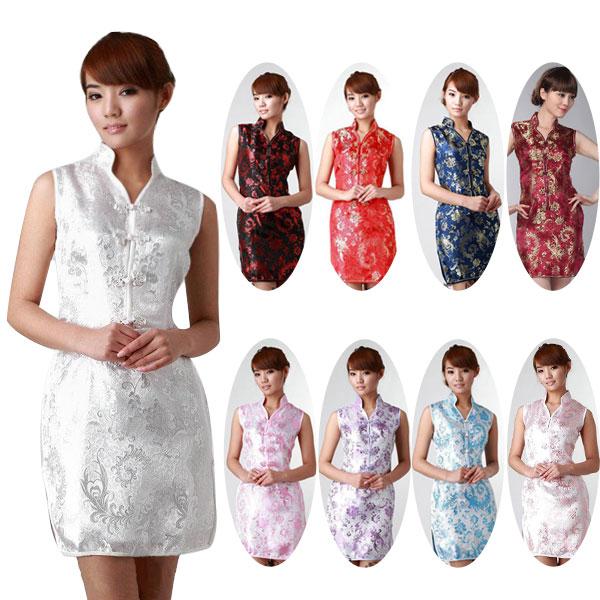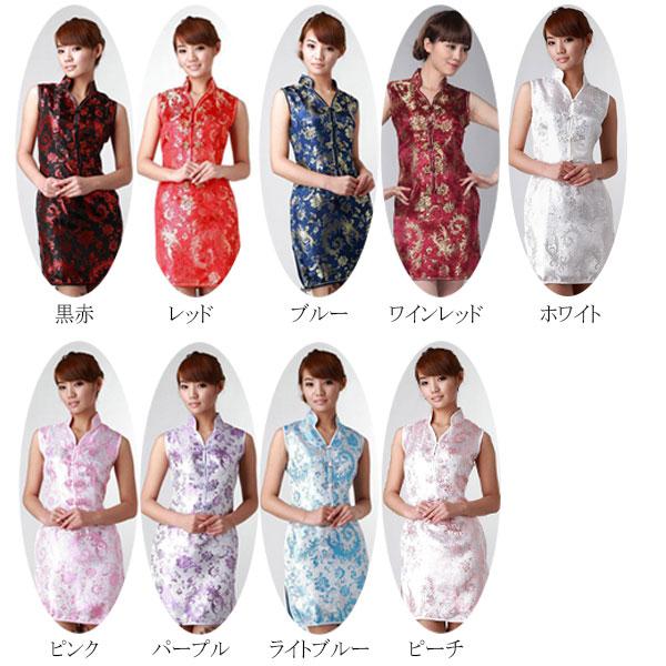 ◆V字襟・ノースリーブデザイン、鳳凰柄の刺繍が施されたショート丈チャイナドレス!◆カラーもサイズも豊富に揃え、光沢がある生地感がとても綺麗、普段使いから、パーティー、二次会、コスプレにもお勧め!
