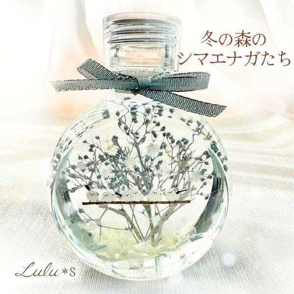 冬の森のシマエナガたち ハーバリウム 雪の妖精 シマエナガ プリザーブドフラワー プレゼント ギフト 誕生日 可愛い …