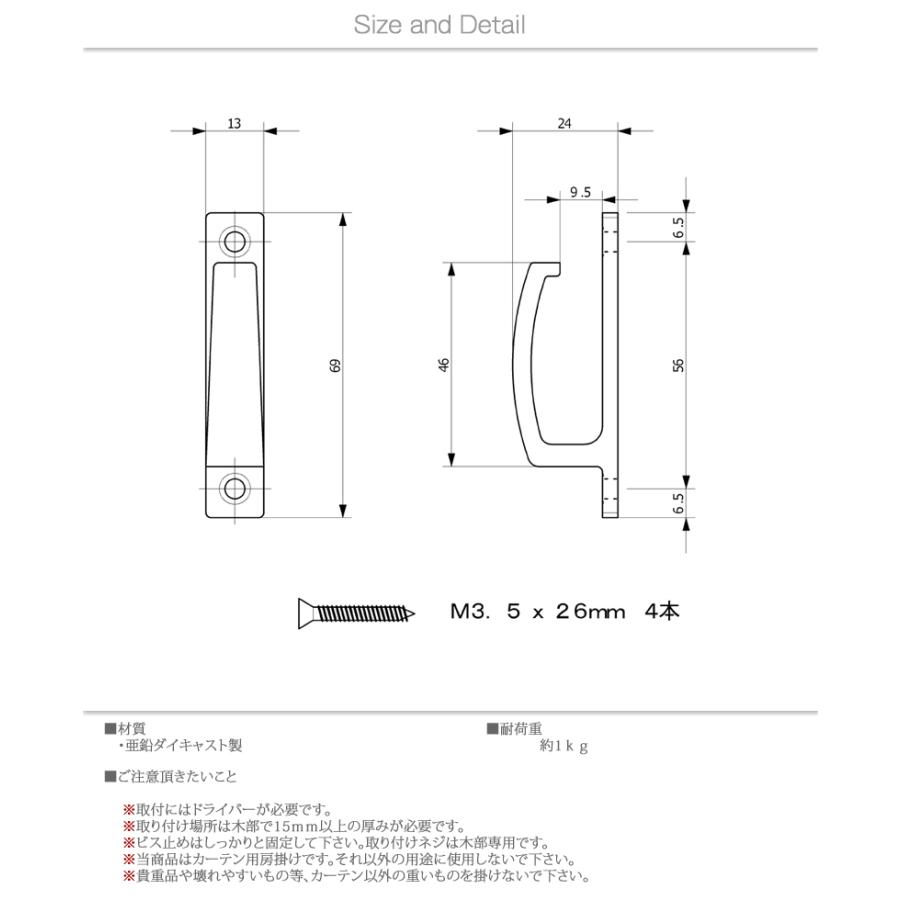 房掛け 【ゼロ】■材質:亜鉛ダイキャスト製■カラー:シルバー■made in CHINA・ネジ止めタイプのしっかりとした房掛けです知っておいていただきたい事※取付けにはドライバーが必要です。※取付場所は木部で15ミリ以上の厚みが必要です。※当該商品はカーテン用房掛けです。※貴重品や壊れやすいもの、カーテン以外の重いものを掛けないでください。