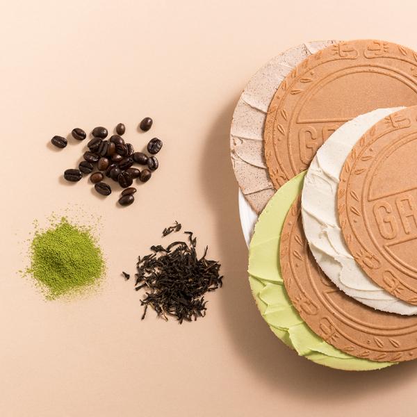 赤い缶『ゴーフル・オ・グーテ』は、紅茶・抹茶・コーヒーの豊かなお茶風味が薫ります。