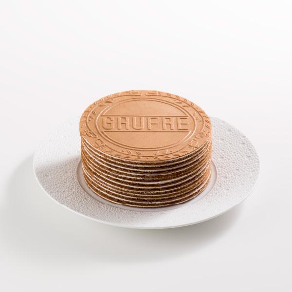 サクサクと香ばしい薄焼きの生地に、バニラ・ストロベリー風味・チョコレートのクリームをサンドしたゴーフル。
