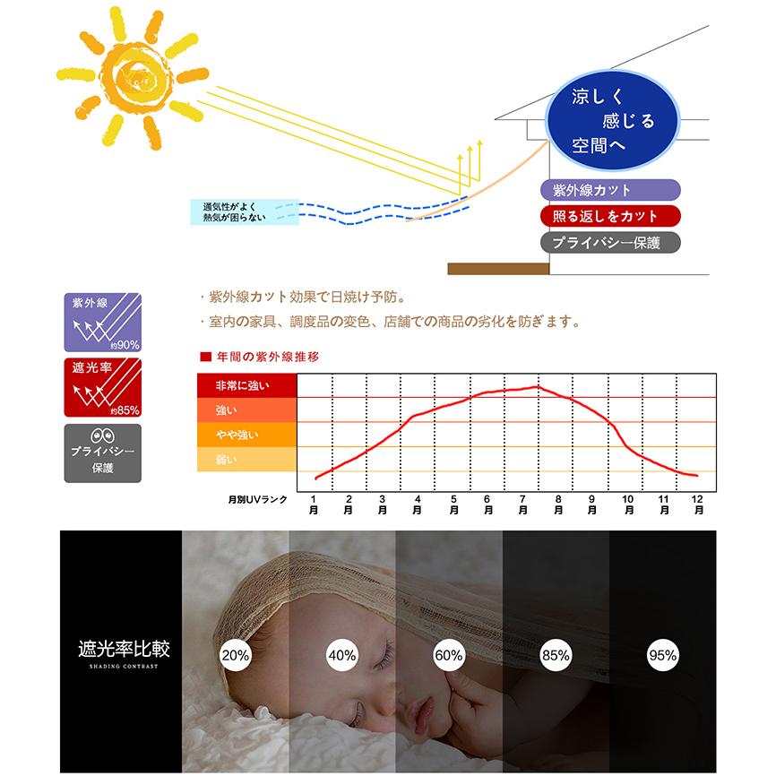紫外線 UVカット率・約90%、遮光率・約85%