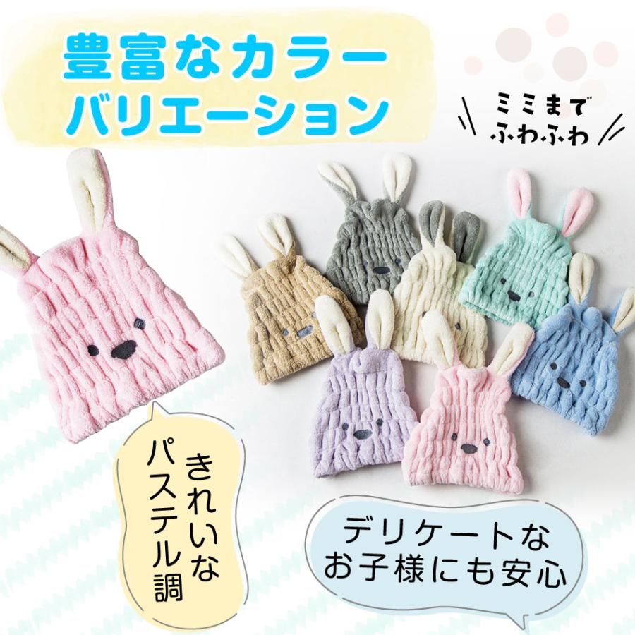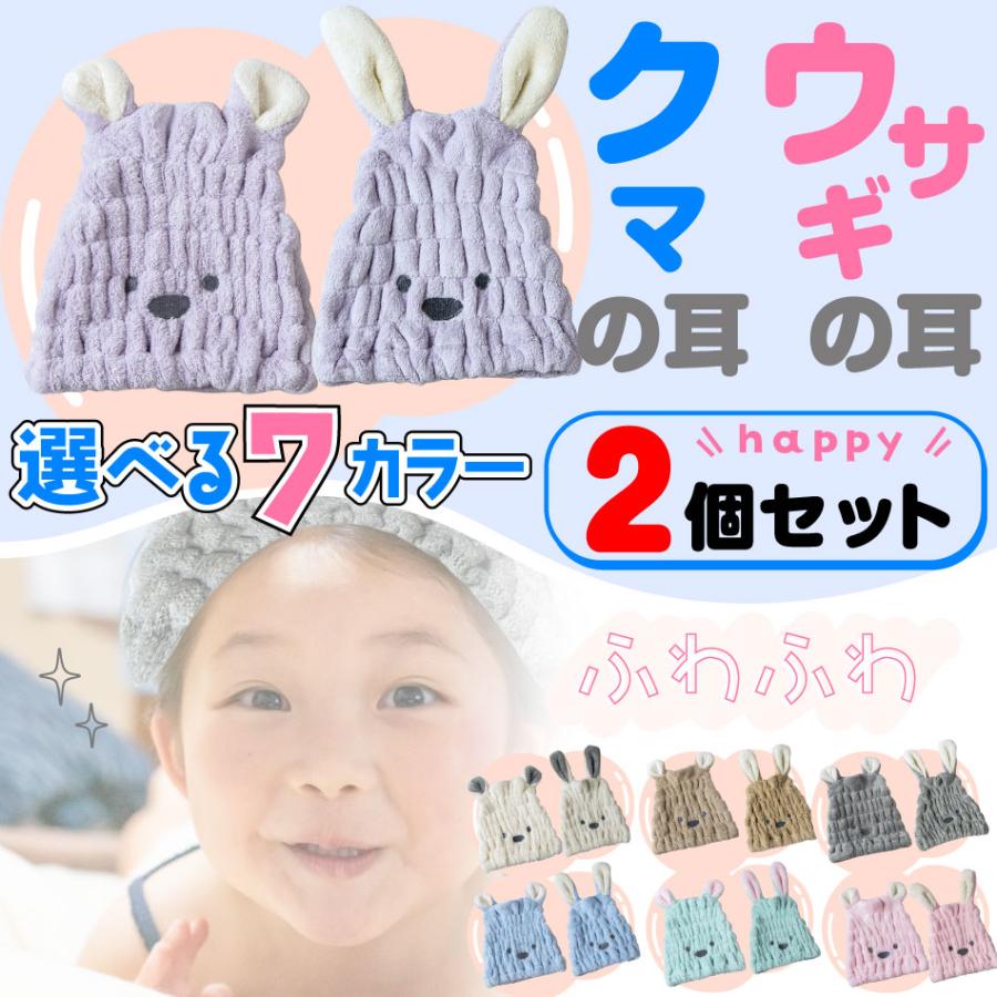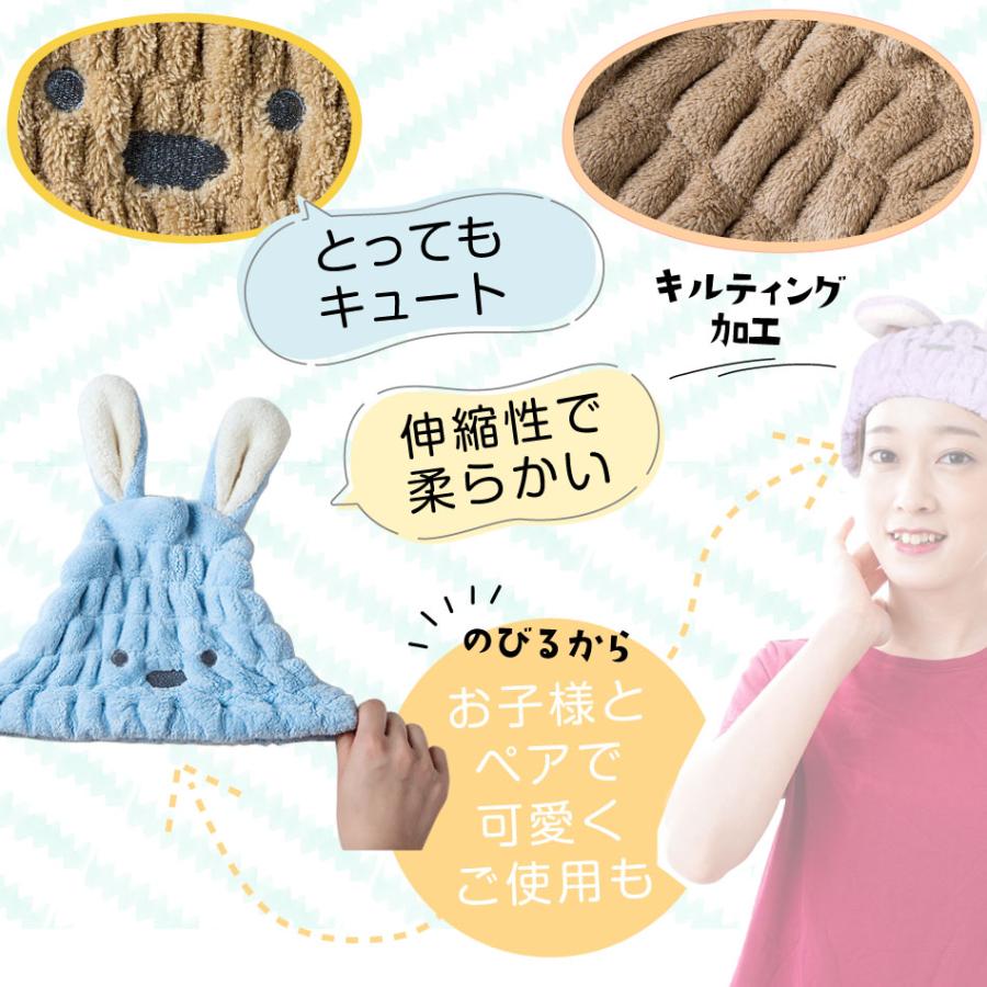 うさぎの耳とクマの耳のかわいいヘアキャップタオル