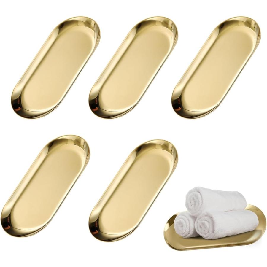 おしぼりトレー コイントレイ キャッシュトレイ バスタブ ステンレストレー おしぼり置き 高級 飲食店 5枚セット (ゴールド_5枚, 18cm)