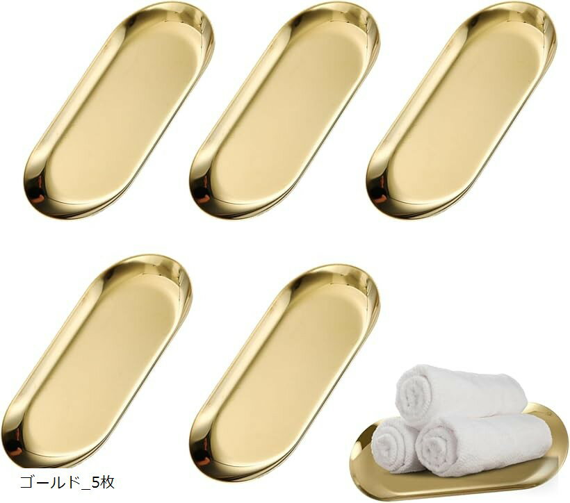 おしぼりトレー コイントレイ キャッシュトレイ バスタブ ステンレストレー おしぼり置き 高級 飲食店 (ゴールド_5枚, 18cm)