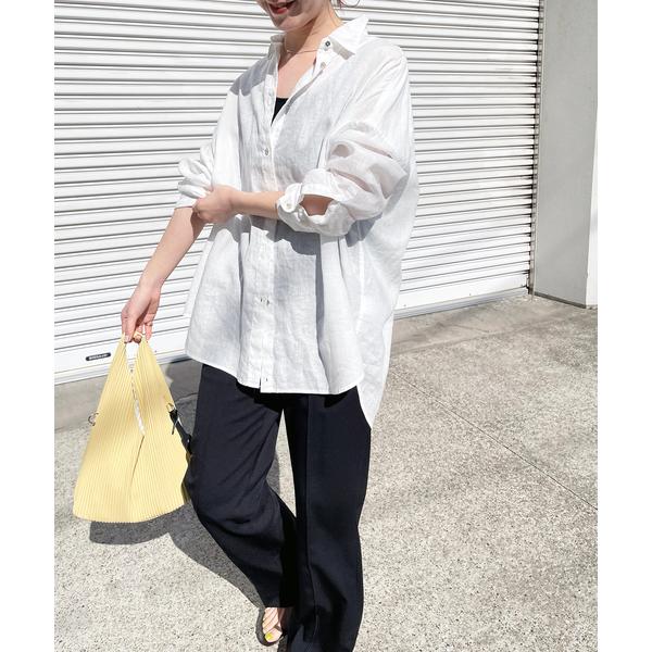 ブラウス シャツ 「追加2」80リネンカシュクールビッグシャツ レディース
