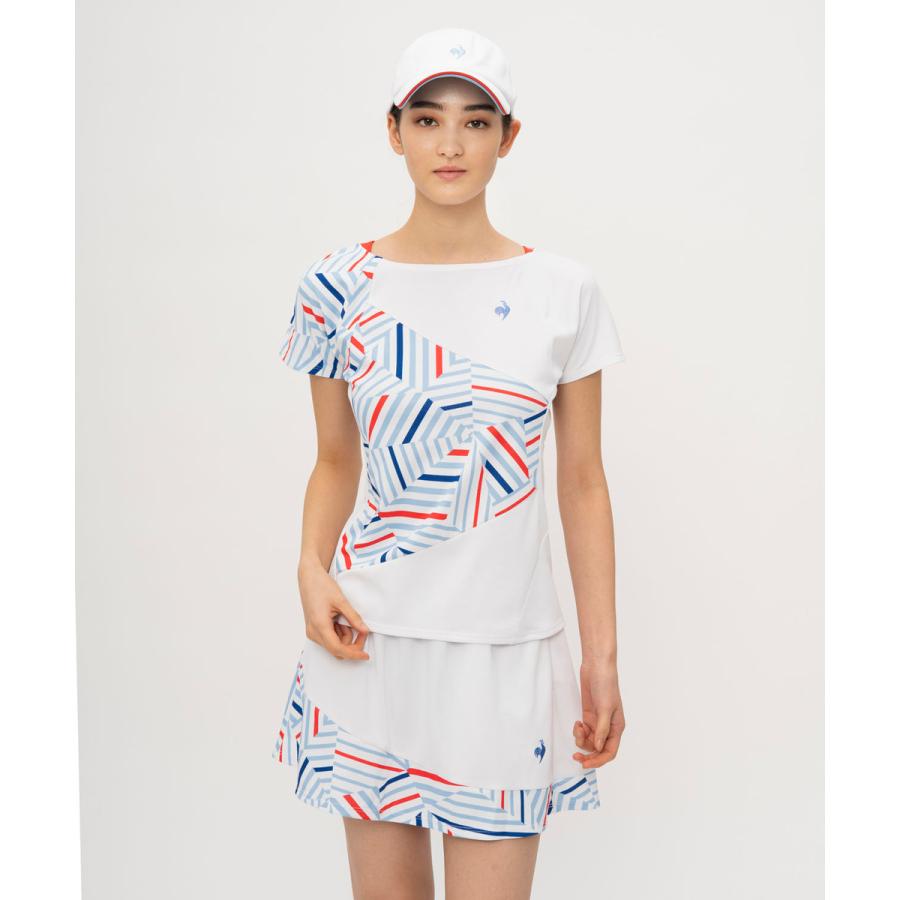 テニスの基本動作である、サーブ・ストローク・ボレーの動きに着目し、DISCで検証し開発したウェア。動作時のストレスをダーツとパターンで解消した”Aile forme(エールフォルム)”パターンを搭載したゲームシャツです。袖を腕を上げた状態のパターンにすることでサーブ時の腕の可動域を確保し、肩回りにダーツを施すことで適度にゆとりを持たせ、ストローク・ボレー時の肩回りの可動域を確保しております。フランスの伝統的なストライプ柄を様々な形で配置したスポーティーなグラフィックがデザインポイントです。細部までこだわり作られた商品の着心地を体感してみてください。