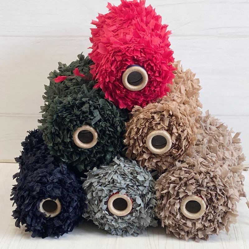 大きなスラリット素材のひらひらリボン糸。様々な作品にお使いいただけます。とてもボリュームがある羽根なので作品に華やかさが出ます。(こちらの「でかひらモール」はフィルム無しタイプとなります。)【素材】ナイロン100%【番手】1/2