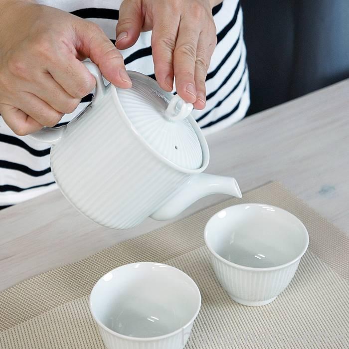 上品なやや青みがかった白磁で、軽く使いやすいのが特徴です。高級感があり、奇をてらわず、何より実用的で使いやすいポットです。来客用、普段使い、男性・女性・お年寄りなど性別や年代を選びません。